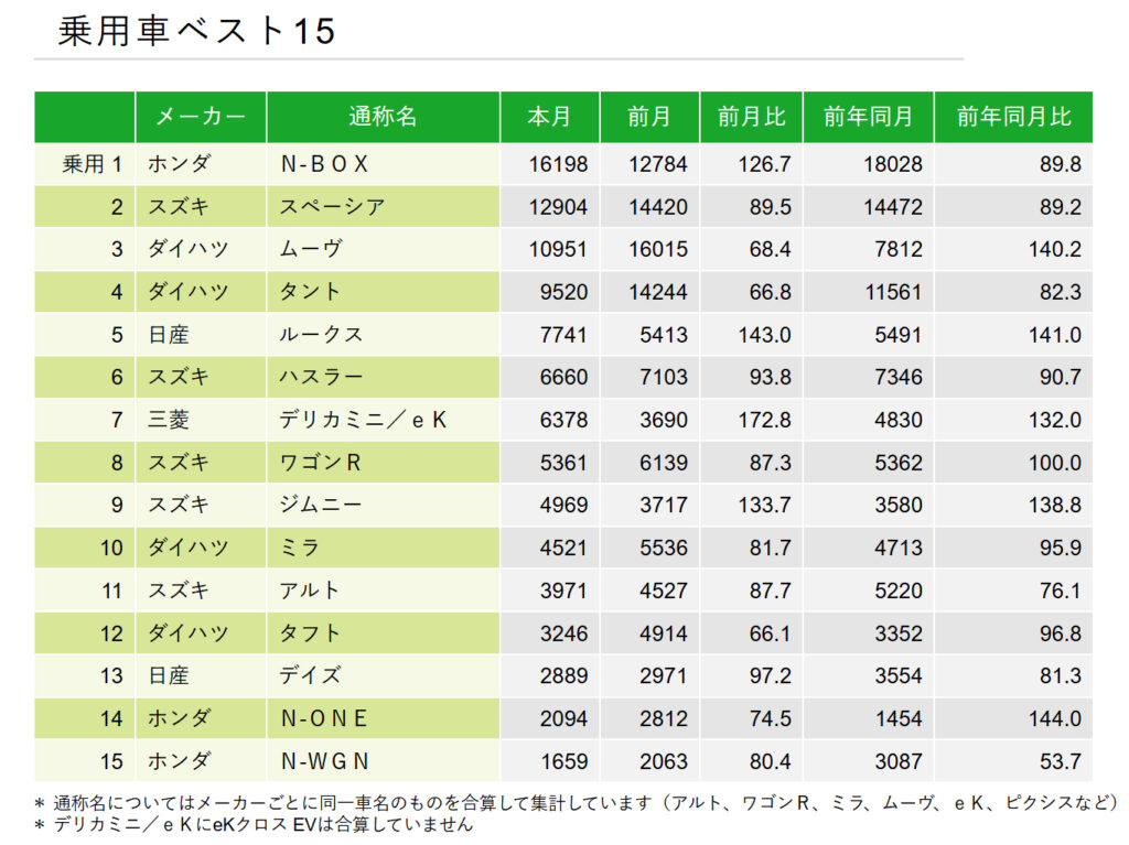 ただ、なんかまだまだ一波乱ありそうな予感もしますので、目が話せない軽自動車販売ランキングですね。