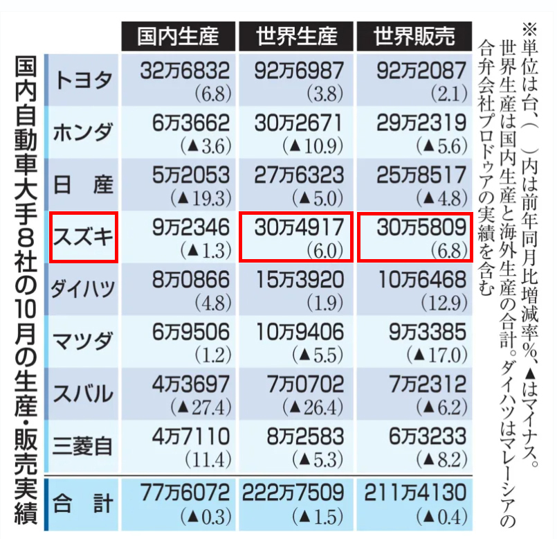 すでに5年前から国内の販売台数ではトヨタについで2位となっていますが、なんと世界の販売台数においても「国内自動車大手8社 10月の生産・販売実績」でついにホンダを抜いて2位に浮上ししました。