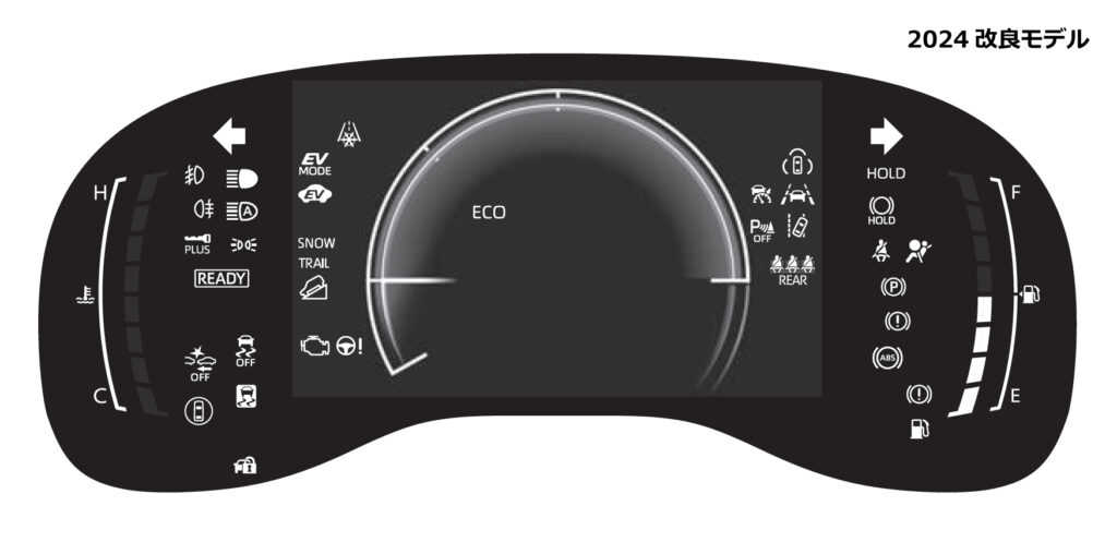 最近の流行りはリアのイラストが表示されていて、ブレーキランプの状態を確認できるようになってますがこちらはかなりシンプルですね😅