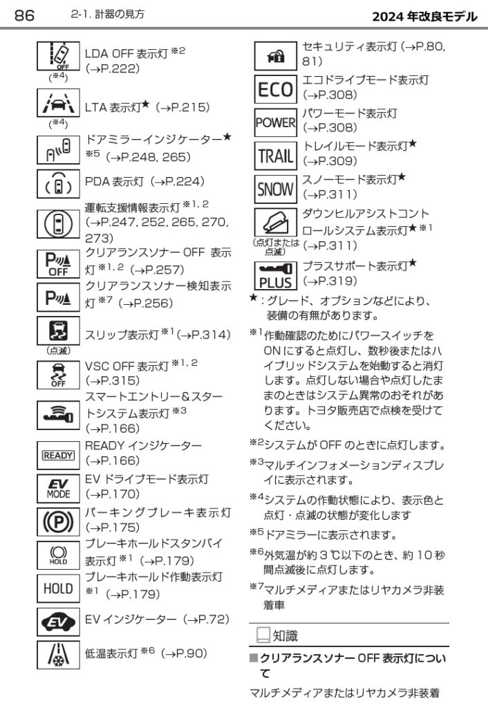ヤリスクロス 2024年一部改良モデル 取扱説明書(P86)