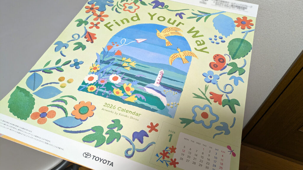 最後に全くトヨタのクルマが載っていない来年のカレンダー(それはそれでありがたい)を頂いて帰りました。