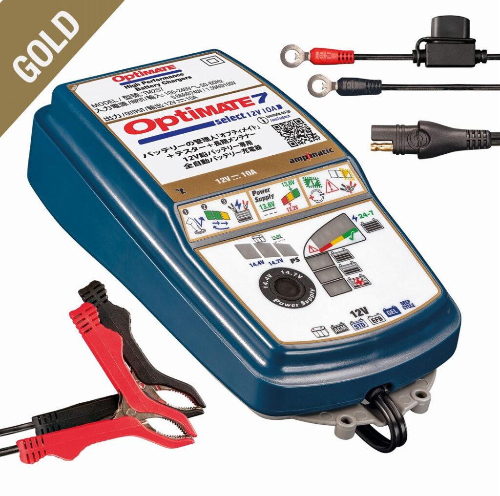ということで、その対策として以前に動画でご紹介した「テックメイト」さんのバッテリーメンテナー「オプティメイト 7 セレクト」を使って本日バッテリーのメンテナンスをいたしました!